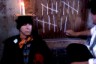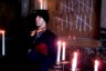 With none of the muffled anonymity of hiding behind rows of theater-goers, you and your fellow patrons become part of the play itself, causing both discomfort and a sense of common purpose and witness to O'Reilly's masterful turn as the man who sold his soul to the devil. From my seat (I was in the even closer section) I could see the sweat on the actor's brow, and the bright orange tag stapled to the cuff of his suit pants - an homage to the Village Discount Outlet, that great repository of affordable costuming. Something in his manner reminded me of Peter Lorre circa M, made stronger by Faustus' reminiscence of the alphabet, a thing he hasn't used in the twenty-four years since he made a pact with Mephistopheles: "My hand, my whole arm, misses those blobby 'O's, those languorous 'S's. The thrusting peaks of 'M'."