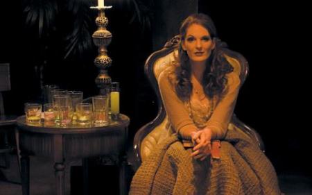 www.steadstyle.com - "I have seen the basement of the Chopin Theatre configured in many different ways over the years, but the current arrangement for Backstage Theatre Company's "Aunt Dan and Lemon" is truly novel. The lobby and adjoining theatre space, once separated by an iron door, are neatly opened up with a curtained alcove that remains open through the nearly two intermission-less hour performance. There are no traditional theatre seats but rather an eclectic selection of old sofas, cast-off chairs, a bed and table that make you feel like you've walked into a second hand basement rummage sale. The concept of the "found" space is brilliant, and Director Matthew Reeder places his actors throughout the space, often delivering their lines from seated positions amongst the audience. This most untraditional presentation form may be the best way to approach Wallace Shawn's controversial and decidedly unconventional script as it sets us off guard and open to whatever possibilities unfold.