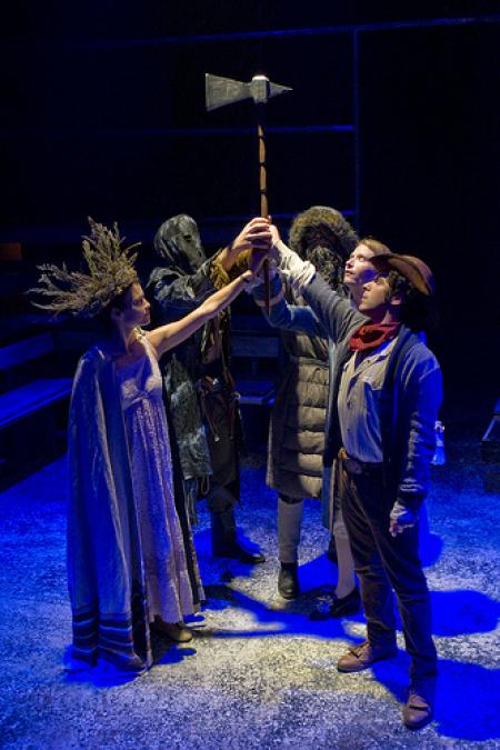 The play is a riff on the Arthurian mythos as well as that of the Norse gods. But beyond that, Allen and Minton have reconceptualized these ancient tales to fit particularly American themes. It’s a brilliantly innovative fusion that must be seen to be comprehended. Casper Kent (Brandon Ruiter) is a good hearted foundling who is trained by the mysterious magician/storyteller Hap the Golden (Cliff Chamberlain) to reclaim a magical hammer that will grant him power
