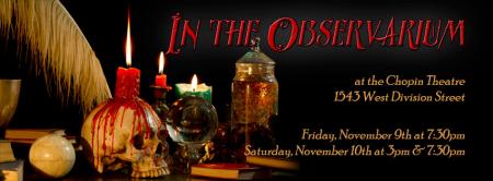 Green and Matthew Ellenwood. “The evening will be a delightful menagerie of Victoriana horrors,” says artistic director Ellenwood. In a mysterious Bohemian lounge outside of time and space, several unsettling, intertwined tales flowed from the pen of the late Dr. Alastair Tarquin Blackwell, a notorious absinthe drinker and creative from the Belle Epoch. Come interact with his creations in the Victorian parlor of the Chopin Theatre and encounter worlds seen and unseen in another world premiere performance.