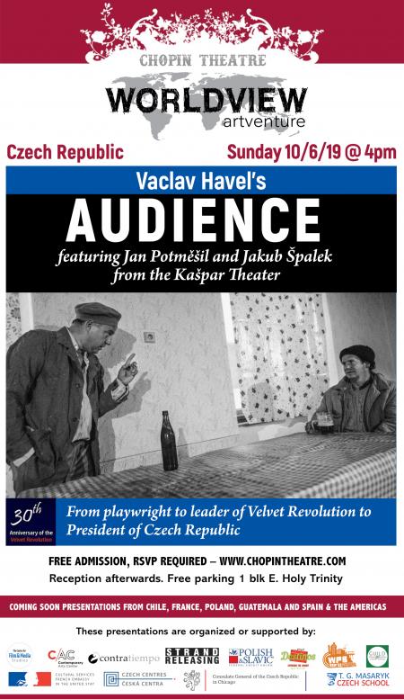 4pm - Performed by Kaspar Theater Company of Czech Republic, AUDIENCE belongs to a trilogy of partly autobiographical one-act plays abased on Vaclav Havel's experience of being forced to work in a brewery and under constant harassment from the Communist regime.